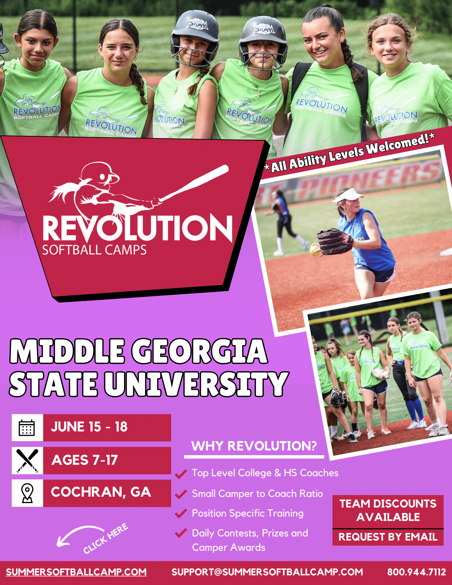 We’re excited to host the Revolution Softball Camps at Middle Georgia State University. Join us and improve your softball skills this summer!