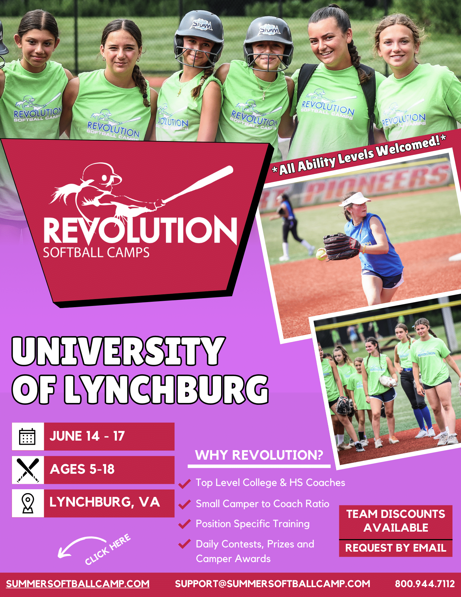Revolution Softball Camp & Clinic is open to kids & teens ages 5 to 18.